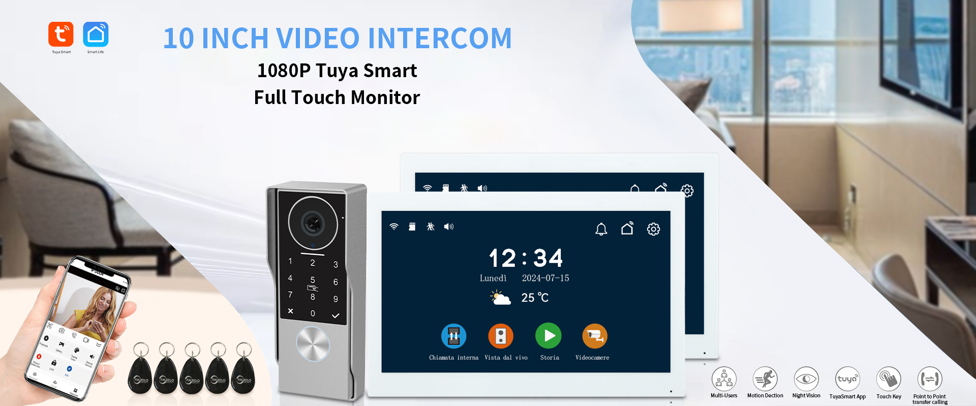 Anjielo 10 Inch Touch Screen 1080P Doorbell Camera Wired Video IC Unlock for Villa Home TUYA Video Intercom Door Phone Kit