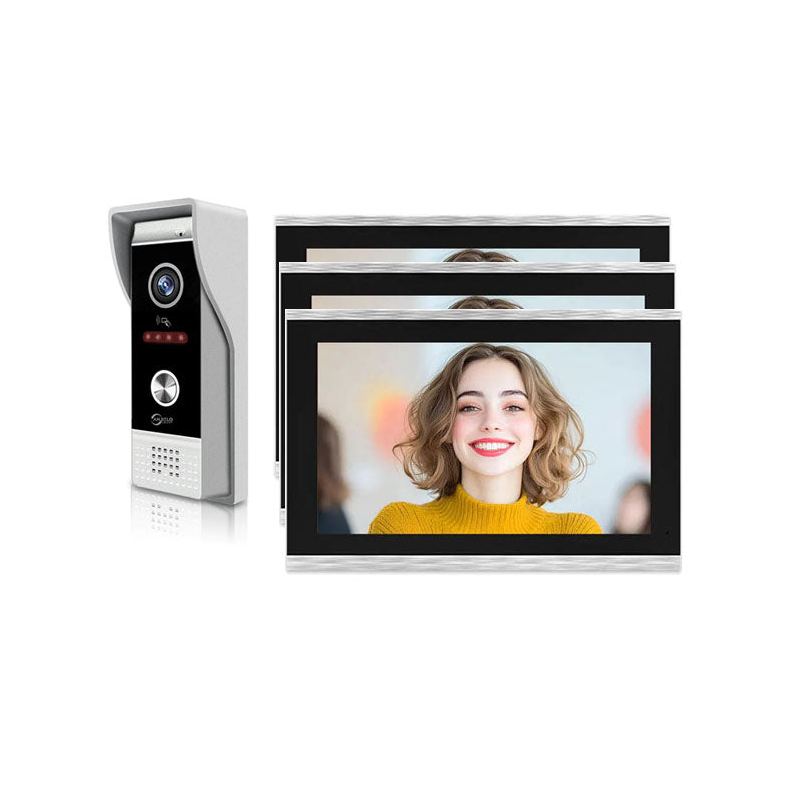 - 10 INCH TOUCH MONITOR AND 1080P HD DOORBELL:10-inch touchscreen monitor with touch operation, hands-free, and Wifi support. Outdoor metal doorbell with waterproof cover, built-in IR sensor and 1080P camera, 160o wide angle, night vision, waterproof, dustproof and vandal proof. It can connect with all 12V electronic locks to realize one key unlocking.