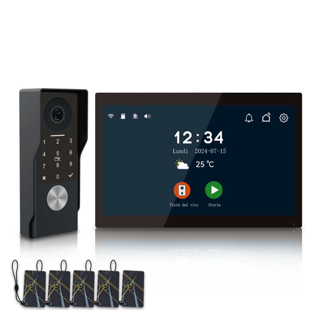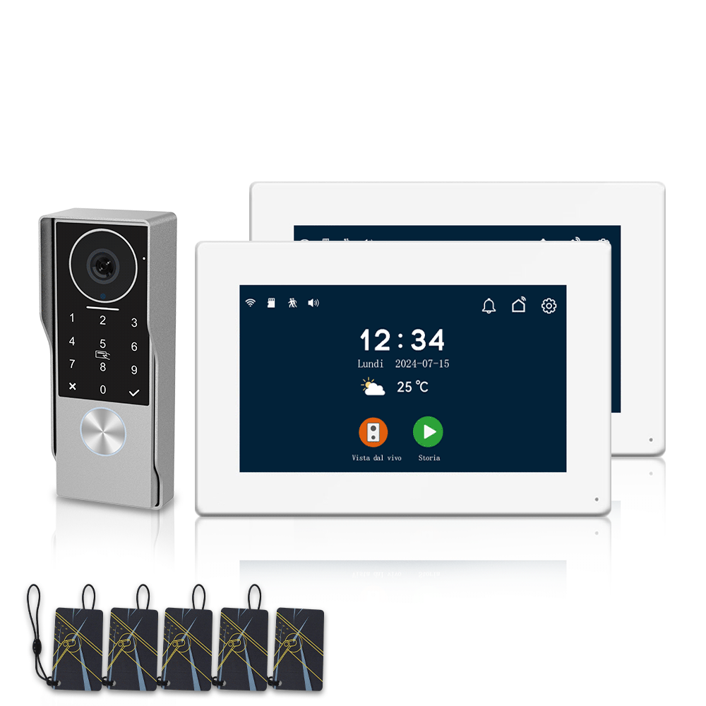AnjieloSmart 1080P waterproof touch screen card swipe password unlock 2-line video intercom two-way audio kit