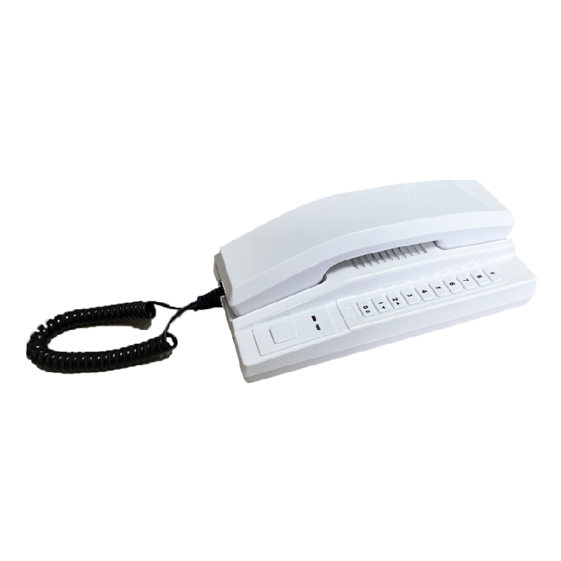 6. Panel met 10 nummer knoppen, een belknop en twee lampjes: lampje (rood), operationele indicator licht (groen).
