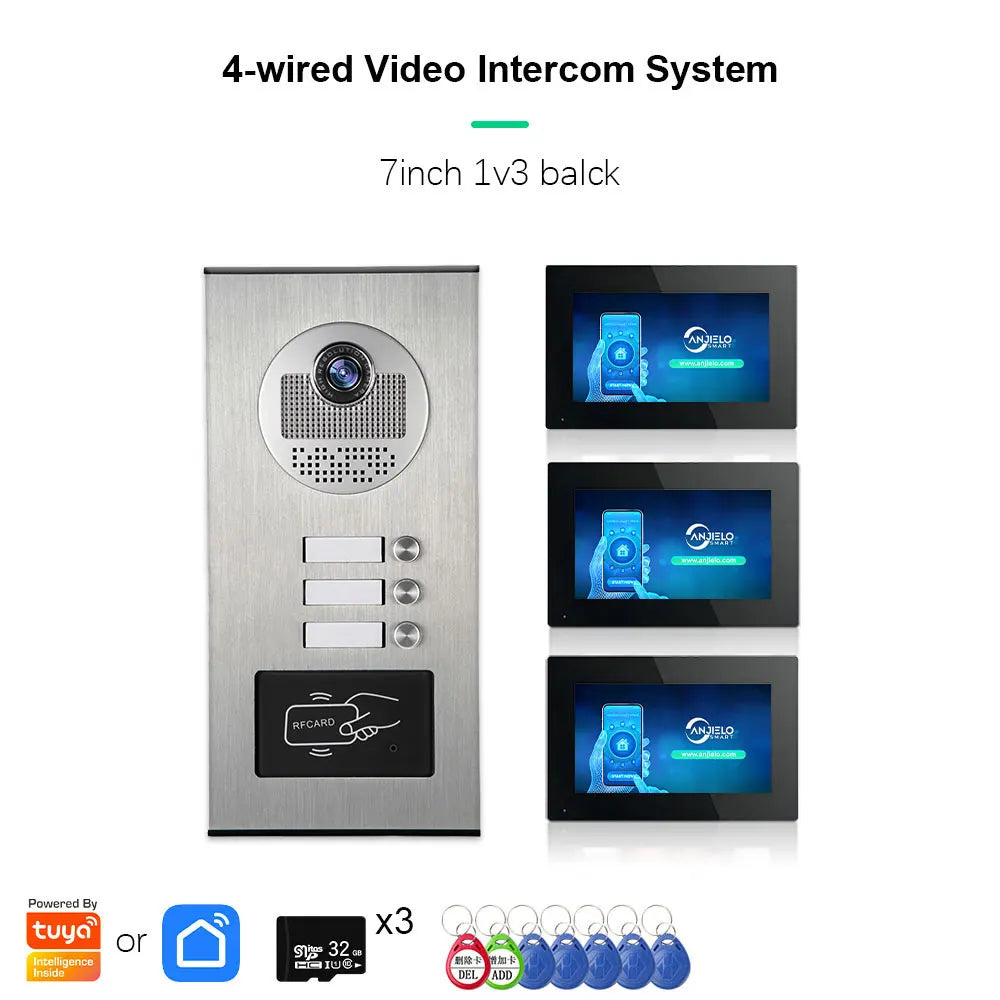 Anjielo AHD 1080P Video Doorbell for Multi-family Metal Doorbell Video Intercom System Tuya 7-inch Monitor