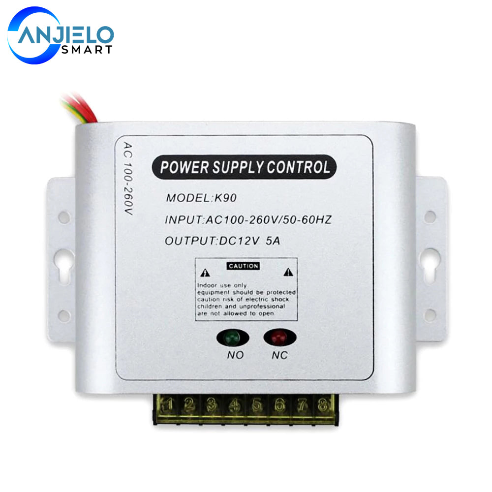 * input voltage is AC 100-260V, and the frequency is 50-60HZ * high low pressure,1500VAC/1 minutes do not break * adjustable output voltage DC11.5V-13.5V(for wiring distance, to make the lock does not work, then you can take the high voltage) * output current ripple voltage:5A; upp=50mV * Control is a group of active signal input(DC5-24V) and internal isolation, and can simultaneously connect multiple access control controllers and building intercom