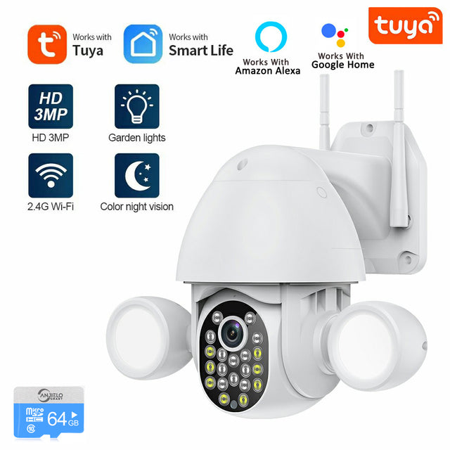 Anjielo Motion Detection Color Night Vision Auto Tracking WiFi Pan-Tilt 360° View 3MP Security Camera for Home Security