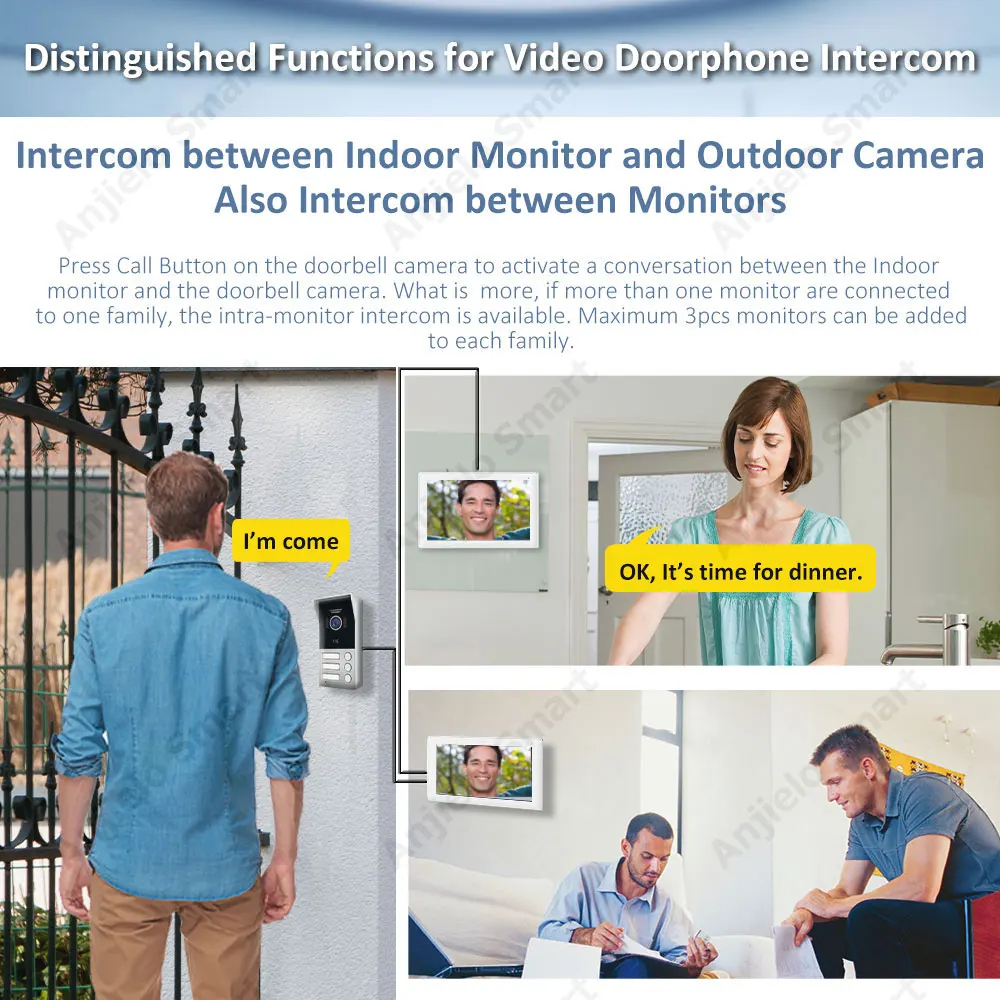 Anjielo Smart 1080P 7/10 Inch Touch Monitor with RFID Card Access Control System for Home Villa 2 Line Video Intercom Doorbell Kit