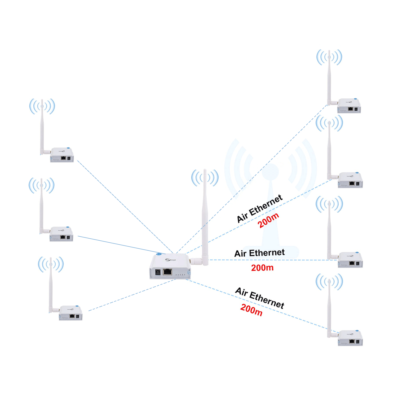 - Antenna network bridge with 3000ft max transmission distance in open space.