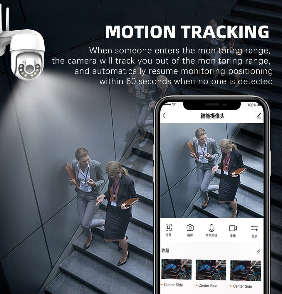 When someone enters the camera shooting range, the camera will follow the person's movement and motion, and then automatically resume monitoring positioning within 60 seconds when no one is detected.