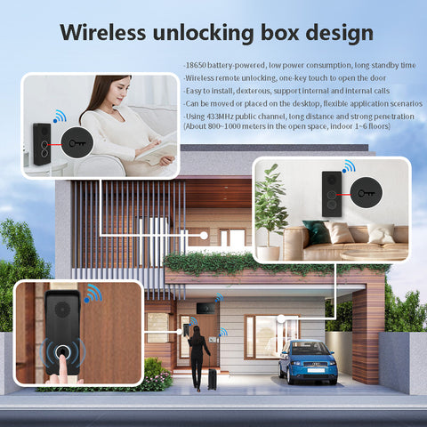 Anjielo Wireless intercom doorbell No wiring required Built-in wireless signal Two-way intercom One-touch remote unlocking