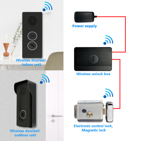 1. wireless intercom doorbell no wiring no network required built-in wireless signal two-way intercom hands free supports wireless remote unlocking