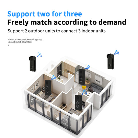 Each system group can support up to 5 devices (Random matching indoor and outdoor units) and multiple wireless unlocking devices