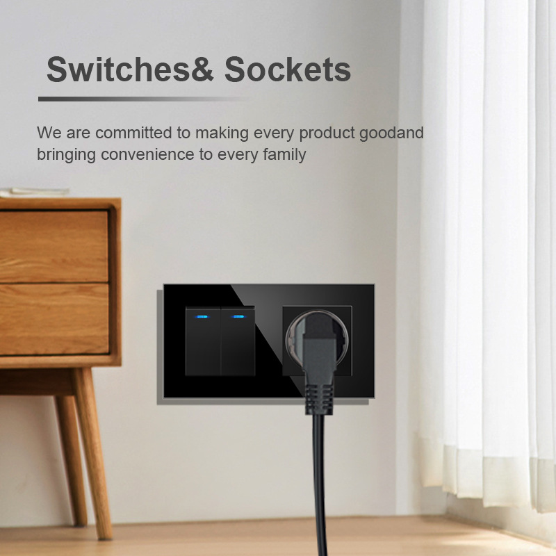 Intelligent control switch socket / 16A high-power 220V with independent mechanical toggle switch / Dual USB fast charging panel with tempered glass touchscreen and LED indicator / Concealed wall power supply