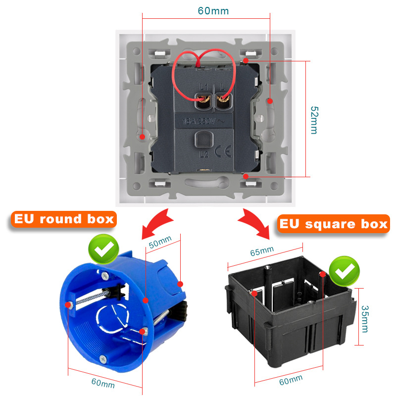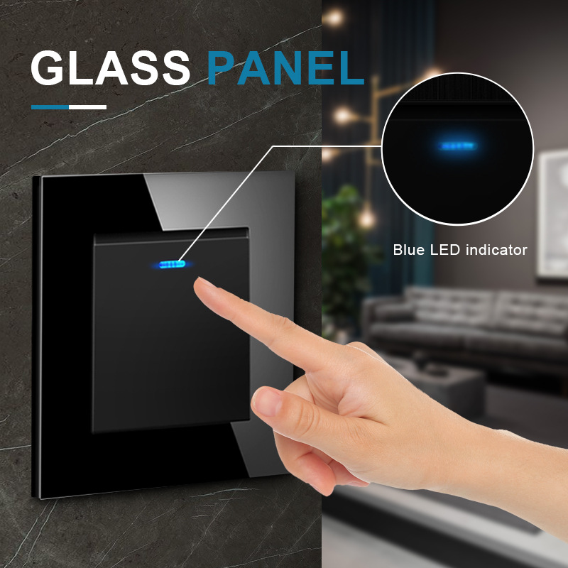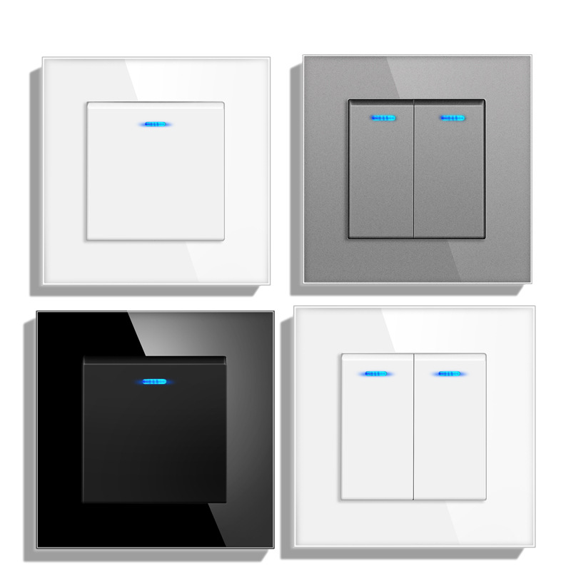 AnjieloSmart European Standard Type 82 Wall Recessed Switch, Double-Pole Single-Pole Switch with LED Light, Household Tempered Glass
