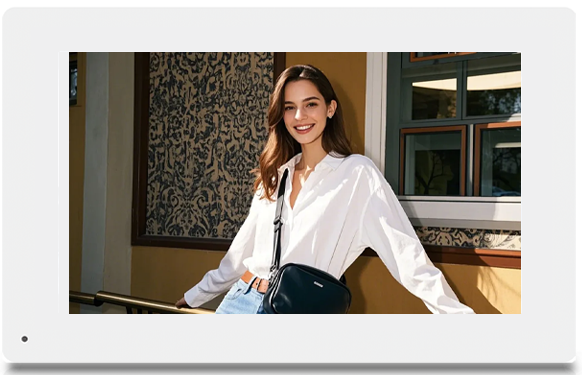 - Video recording or take photo when motion detection or call - The screen saver can always display the time and weather - Custom message prompts