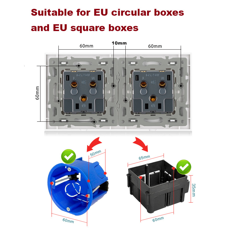 AnjieloSmart Type 82 German-style integrated waterproof switch and socket, 16A power outlet, with tempered glass panel, suitable for kitchens and bathrooms.