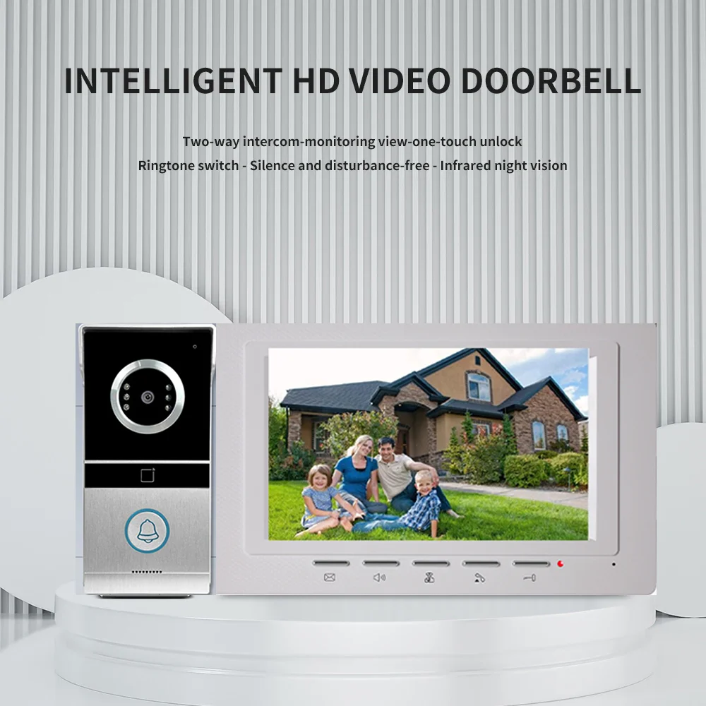 Anjieluo 7-inch color screen two-way intercom one-touch unlock infrared night vision RFID motion detection video intercom security system