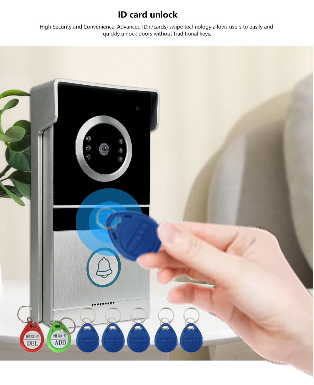 AnjieloSmart 7-inch color screen two-way intercom one-touch unlock infrared night vision RFID motion detection video intercom security system