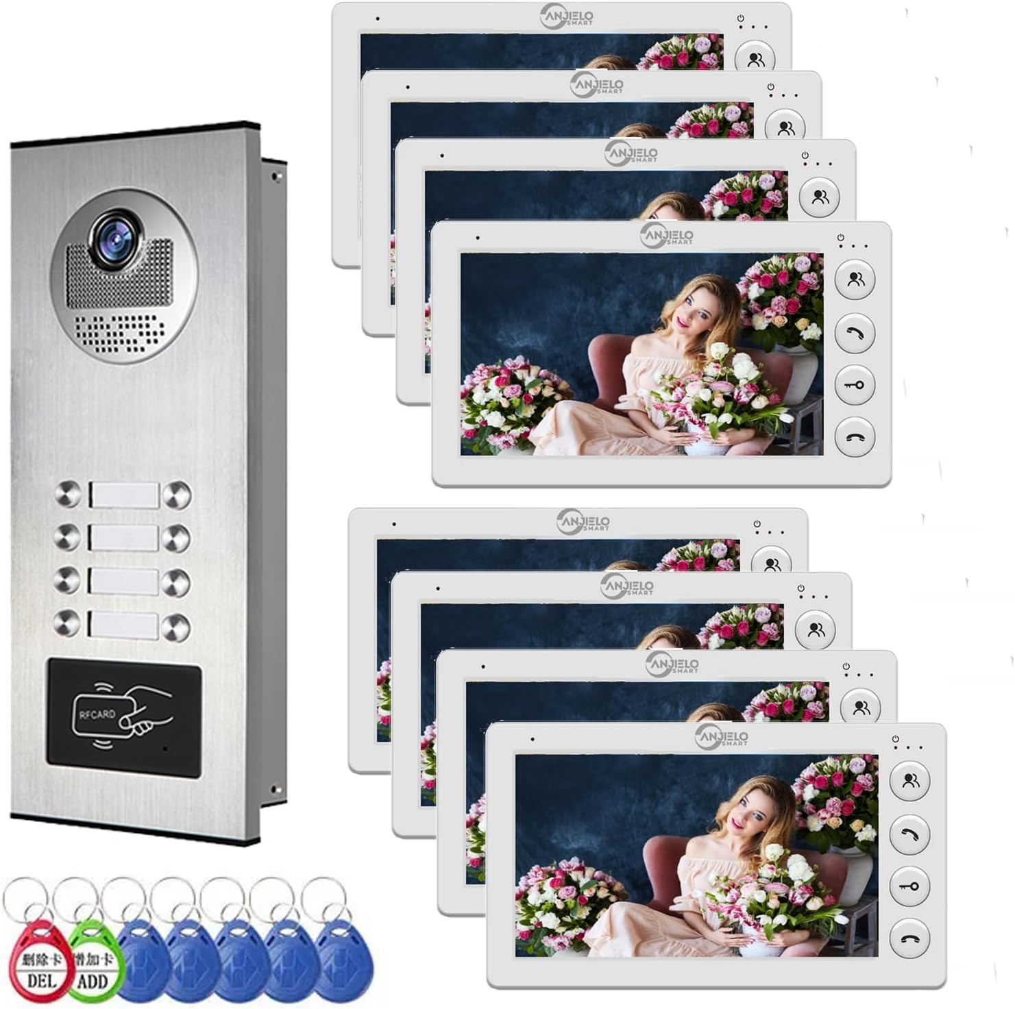 - 8 UNIT DESIGN: 1 outdoor camera and 8 indoor screens for visual intercom doorbell system, supports eight occupants in one building. Individual monitors without interfering with each other